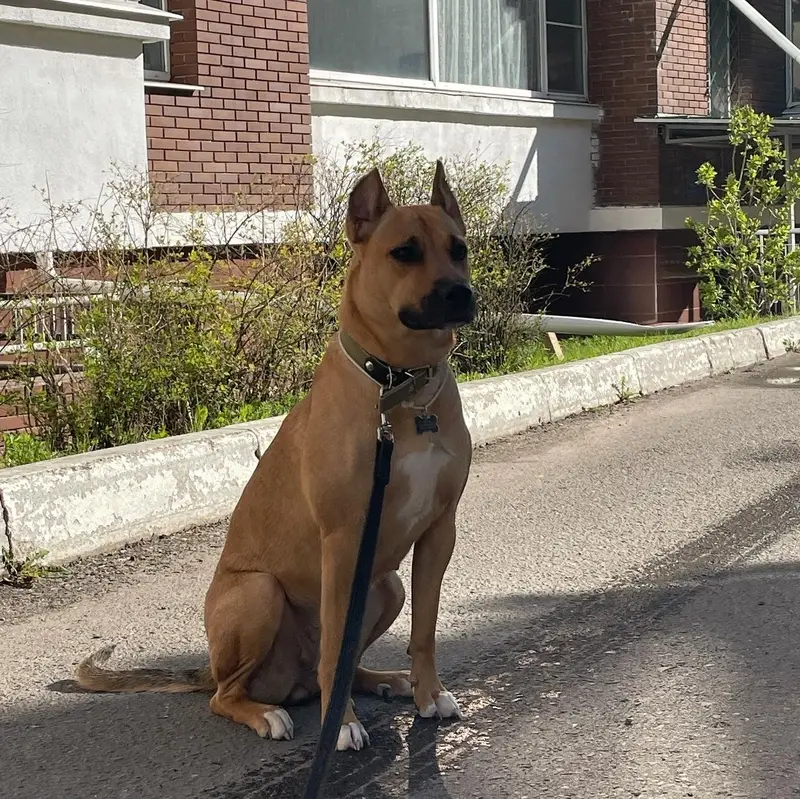 Веслоухая Бежевого цвета Скорее всего беременная Увязалась сама поняли что без ошейника и взяли с собой