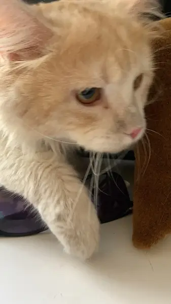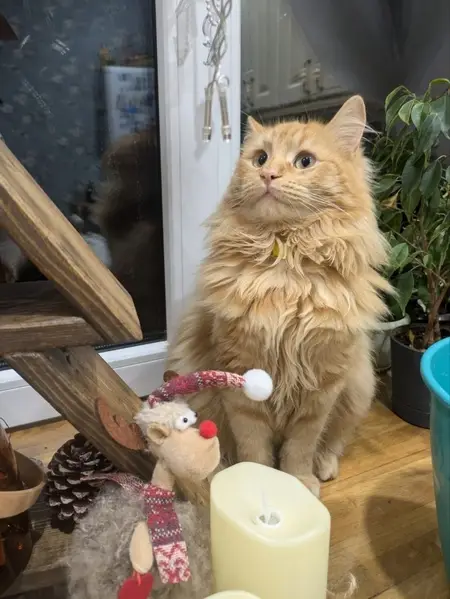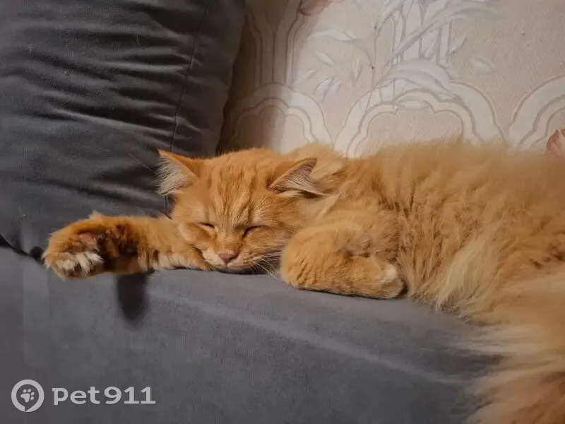 Рыжая, пушистая, на пузике есть ощутимый шрам от стерилизации.