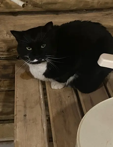 Котенок, девочка, примерно 2 месяца, черного цвета, лапки белые, чистая, ухоженная, приучена к горшку, на ней был ошейник от блох зеленого цвета, блох нет. Спокойная, добрая, ладит с животными.