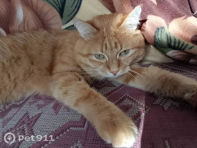 Кот кастрированный, глаза зелёные, рыжий, брили живот на УЗИ и на правой передней лапе ставили катетер. Шерсть на животе с коричневыми пятнами. Рыжик выбежал ночью за дверь и никто этого не заметил