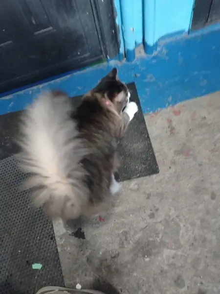 Она была в розовом ошейнике с колокольчиком. Пошла гулять и не вернулась. У неё при ходьбе и беге часто хвост ложится на спину, она ласковая и пушистая