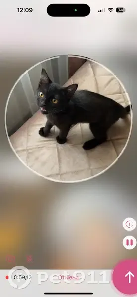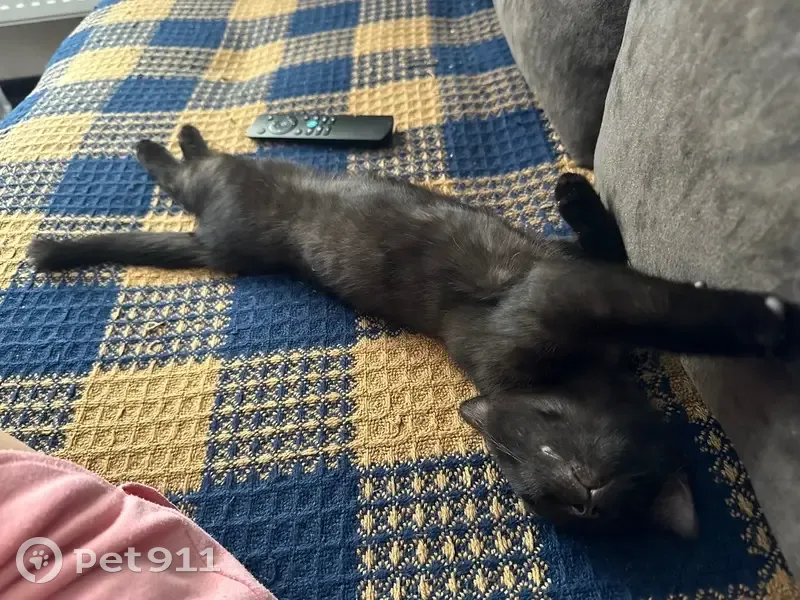 Черный, под углом коричневого цвета Очень ласковый котик На вид месяца 3-4 Большие уши и карие глаза Виднеются еле заметные серые полосы на животе Очень игривый, любит кусаться