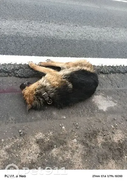 две собаки, одна сбита насмерть, фенотип овчарки, пол неизвестен, в широком ошейнике, вторая - мальчик, фенотип хаски, бело-рыжий, в ошейнике, лежал рядом, не убежал. Хозяин, отзовись!