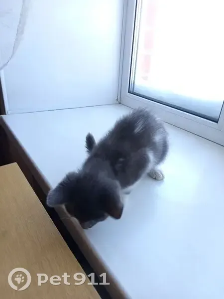 Серый короткошёрстный мальчик с белыми пятнышками. Очень ласковый. Был найден на улице замёрзший и голодный. Пишите или звоните на номер 8 992 509-71-09