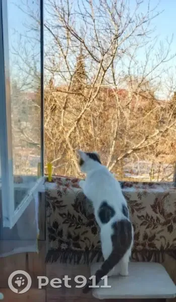 Мальчик. Отзывается на кличку "Компот" отличительные черты это два больших пятна на спинке и цветной хвостик, как показано на фотографии возраст около года. Очень любви обильный любит валяться на спине