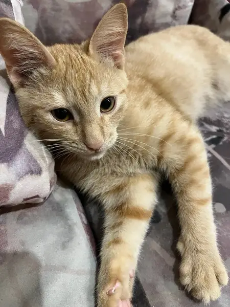 Рыжий котик подросток. Вчера прибился к нашему подъезду. Не худой, чистенький. Похож на потеряшку, социальный, идёт на руки, мурлычет. Людям доверяет. Взяли переночевать к себе, чтоб ночью не скитался.