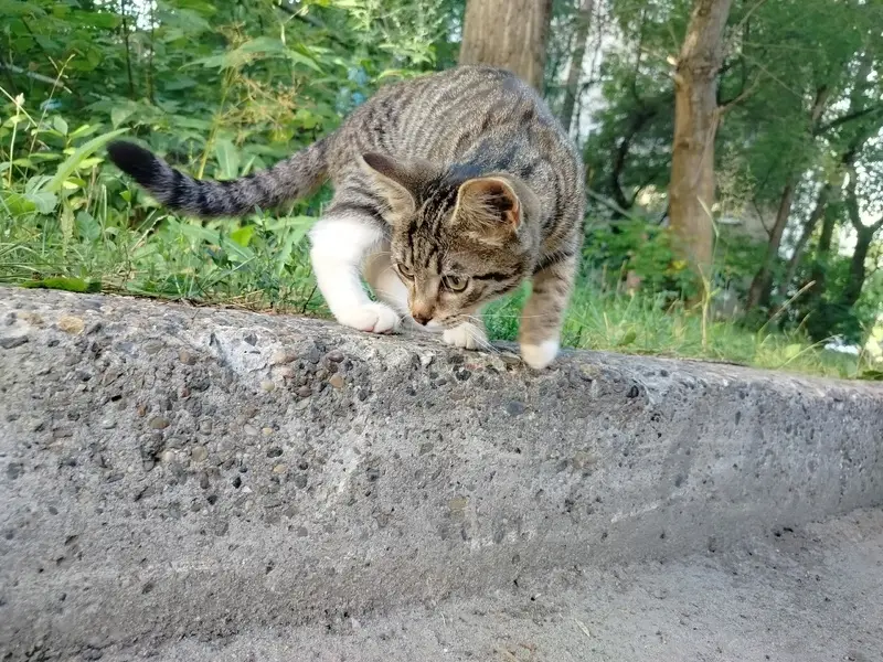 Полосатая кошечка (с белыми мордочкой, грудкой и лапками). Месяца 2-3. Ласковая. Явно домашняя. Найдена утром 15.12 на остановке "Асфальтовый завод" (поворот на Дзержинское).