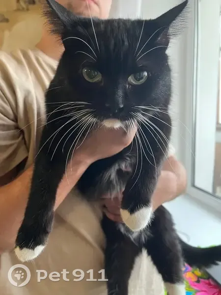 Кошка черного окраса с белым галстуком и лапками. Ласковая. Перебегала дорогу. Заходила во все двери. Ходили вокруг узнавали по дамам возможно бабушки знали откуда или видели, но никто не узнал. Думаю выбежала или из окна выпрыгнула. Любопытно изучала окрестность, но куда то с целью не шла. Узнали у девочек во дворах , что еще вчера она забегала к ним в кофейню. Пока на передержу взяли , очень ищем хозяина!