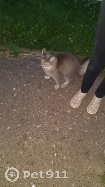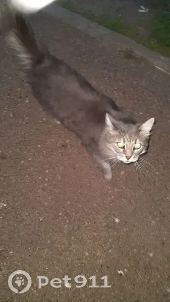 Серая пушистая кошечка, мяукает, просит кушать и просится на ручки. 5 июля видели во дворе дома Проспект Победы 17 .Похожа на домашнюю.Добрая и доверчивая.