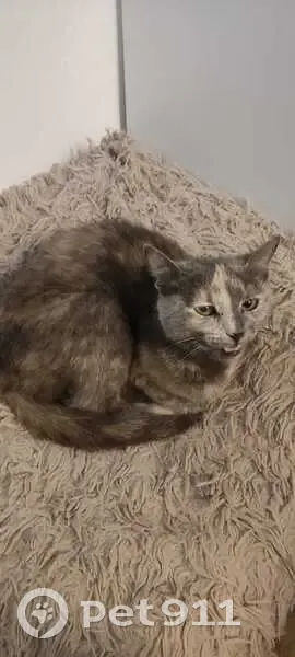 Переодически появлялась на стройплощадке, возможно с ближайших домов. На вид: домашняя кошка, ухоженная, возраст примерно год. 13.08.25. Возможно сбила машина, не видел этот момент. Свозил в ветклинику сделать рентген, перелом тазобедренного сустава, сделали обработку, вкололи обезболивающее. В данный момент находиться у меня, но 22.08.25 уезжаю домой, так как работаю вахтой.