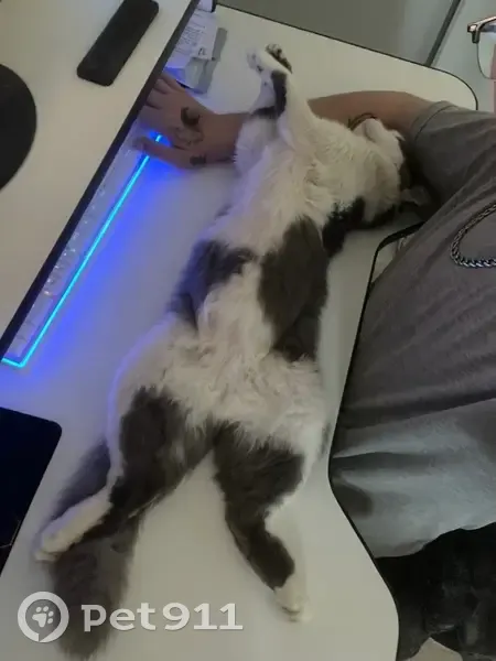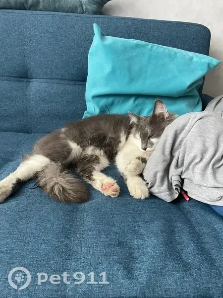 Бело серый кот ласковый, приученый к лотку гулял в жк мой ритм около 2х недель до моей находки теперь временно живет у меня если не найду его старых хозяев или новых придётся увезти в деревню или отдать в приют