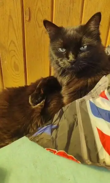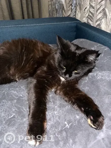 Мальчик, темно-коричневого окраса, с белым галстучкком и лапками. По ощущениям, смесь обычного кота с мейнкуном. Нашла в подвале дома, сидел плакал, никуда не убегал несколько часов