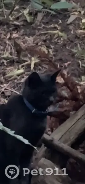 На шее голубой ошейник. Серый кот, глаза желтые. Котенок, молодой, до года скорее всего. Звала, ко мне не подошел. Очень игривый, чистенький. Играл на склоне на ул. Тихомирнова, потом побежал на ул. Щепкина. Может кто узнал своего? Очень хорошенький.