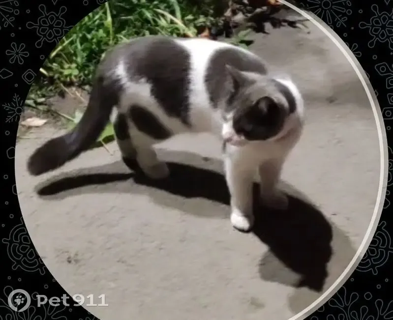 Серо-белый окрас (возможно другой немного, могу ошибаться в окрасках) , на шее красный или розовый ошейник. Выглядела потерянно, на призывы не откликалась. На мордочка серая маска на глазах, ниже уже белое, хвост серый. Кошка убежала в сторону Гвардейской улицы.