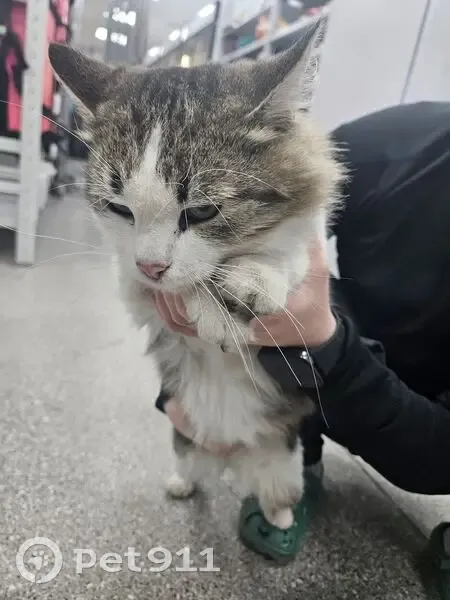 Белый, с серыми пятнами. Очень ласковый, постоянно мурчит. Людей не боится совсем, тянется к ним. По виду меньше года, чистый, мягкий и причесанный, очень игривый. Кушает как грязнуля - вся морда потом в котлетках.