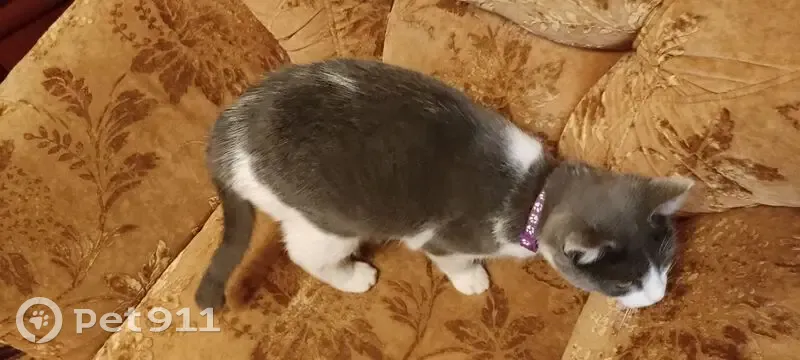 В офисе на московской 15, Казань найден котик. Окрас дымка с белым, ошейник фиолетовый. Отвезли к ветеринару, возраст 6-8 месяцев, мальчик, обработали от паразитов,блох и клещей, дали паспорт . Взяли на пару дней домой, но мы уезжаем, нет возможности будет его дома держать .