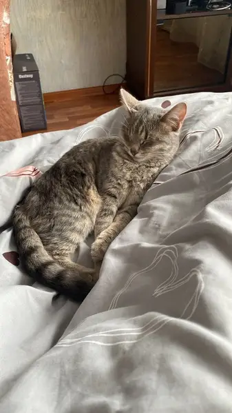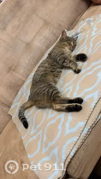 Прибилась кошечка, окрас бежево-серый, на лбу буква М, свозили к ветеринару, врач сказал ей 2 года, видно что домашняя, очень ласковая и нежная кошка, ищем старых или новых хозяев!