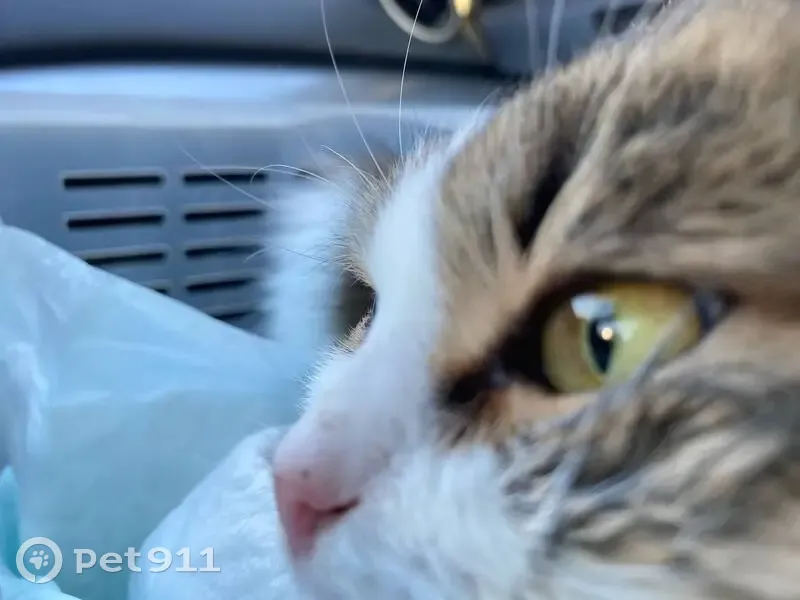 Бело-коричневая кошечка, очень ласковая, но пугливая. Возможно, кто-то узнает в ней своего питомца. Если хозяин не откликнется, но готовы отдать в хорошие и добрые руки.