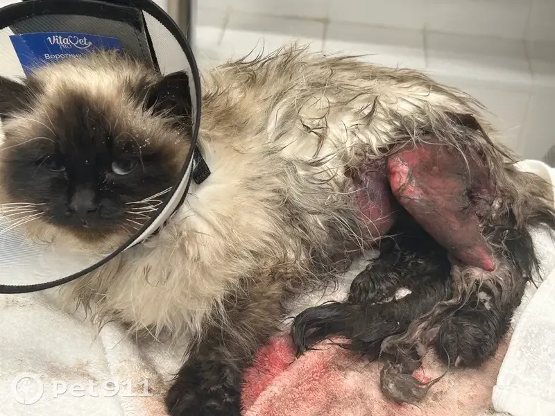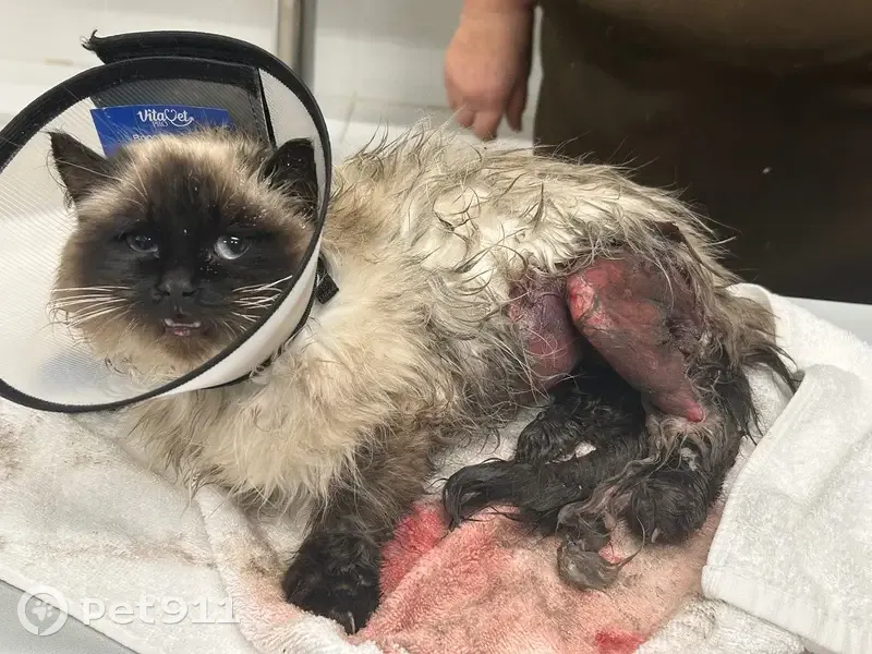 Шел в общежитие услышал мяуканье, вижу котенок решил отнести в вет клинику, оказалась породистая кастрированная. Кожа сильно содралась требуется операция вдруг кто то потерял