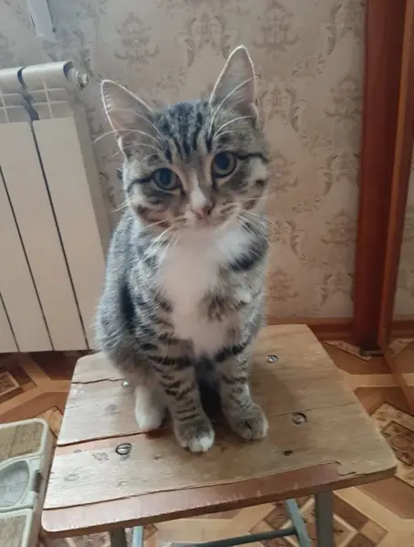 Молодой котик, полосатый, ухоженный, ласковый, очень контактный, любит детей. Пришёл сам ко двору. Оставить не можем, три собаки. Боимся за его безопасность