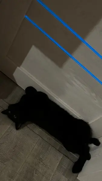 Нашли котёнка, уже повзрослевший, мальчик. Полностью чёрный, без пятен, вытянутая мордочка, Ласковый, похож на домашнего потеряшку, голодный и худенький