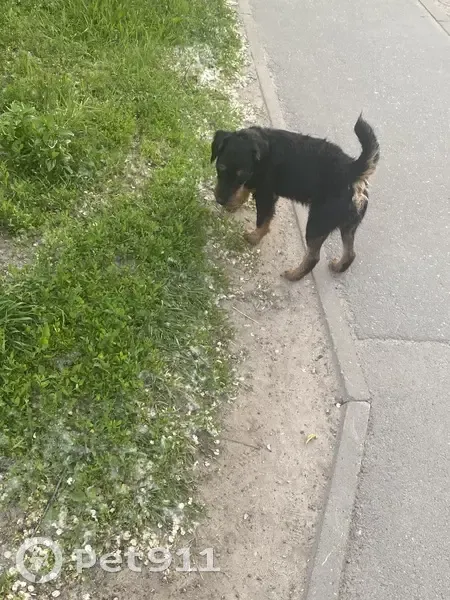 На улице Адоратского,два раза за неделю натыкался на собаку,небольшую,грязную и лохматую. Похожа на породистую,окрас черный с коричневыми вкраплениями.