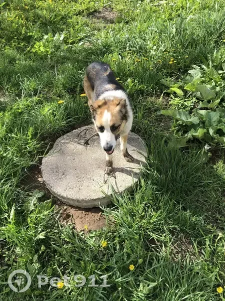 Худая, бегает, ищет след, пасть открыта, как будто хочет пить, на ласковый голос подошла, голодная конечно, неагрессивная, увидела случайно, когда шла за водой