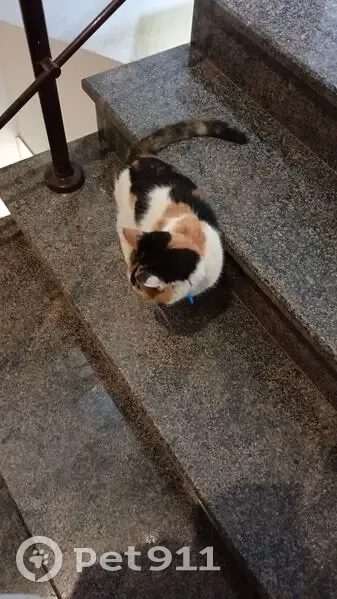 Трехцветная, домашняя, много мяукает. Хозяева...