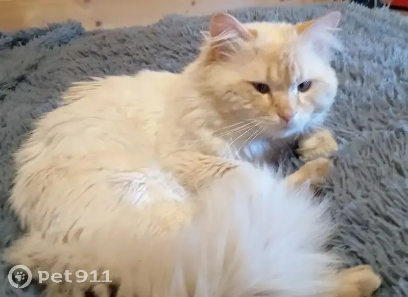 Котик белого цвета с примесью персикового (мордочка и лапки больше рыжеватые). Кот крупный, пушистый и ласковый. Каспер вышел на улицу, но не вернулся с прогулки, раньше возвращался ближе к вечеру или утром, дольше 2-х дней не гулял, всегда возвращался домой покушать.