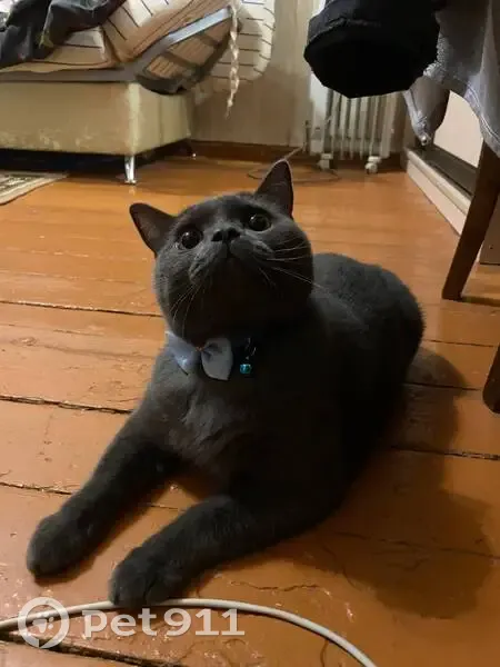 Отзывается на свое имя Лекс, серый котик, чистокровный британец, надобности в долгих прогулах нет потому что кастрированный, вышел в ночь и пропал, на нем был черный ошейник с серебристым сердечком