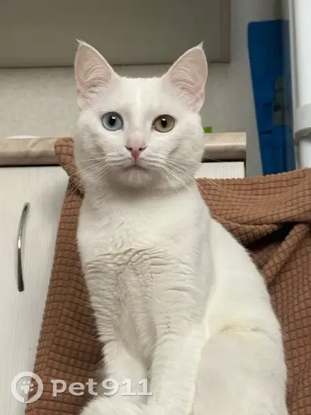 Был пожар в доме, мы с ним выбежали на улице, от паники он вырвался из рук и убежал. Окрас чисто белый с разными глазами (голубой и золотисто-зеленый) не способен выжить на улице, жил всегда в квартире, ласковый, но особо осторожный кот