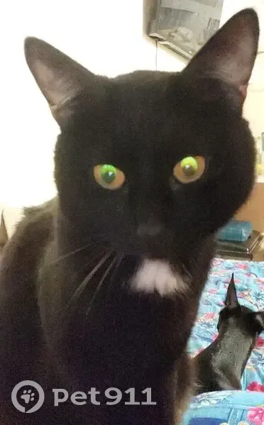 Белое пятно на шее, на шерсти видны белые волосинки, усы и шерсть в ушах белые. Томасу примерно 4 года, не кастрирован. Глаза жёлтые. Уже как 3 месяца назад пропал.