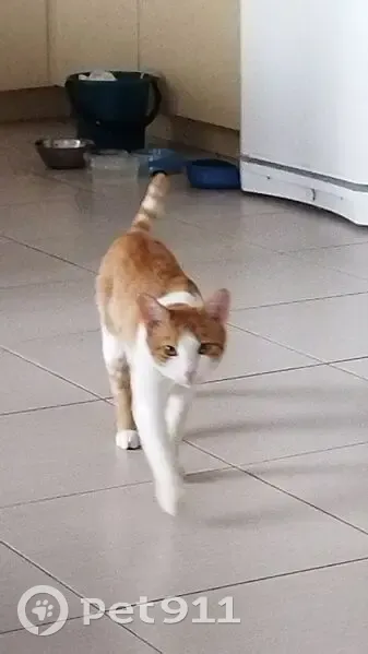 Ласковый кот, голос хриплый или сиплый, белые пятна по нижней половине туловища, морда крупная, горбоносый, не кастрированный, не пушистый, без ошейника.