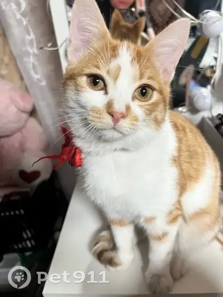 Пропала кошка, Магнитогорская улица, Казань - рыже-белая с красной ленточкой