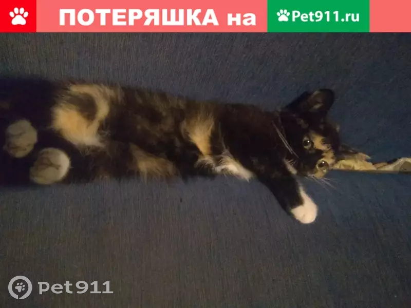Пропала трехцветная кошка возрастом 6 мес. возле дома 34 на ул. Фатыха Амирхана