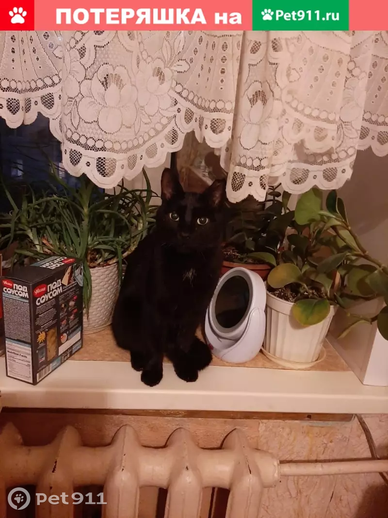 Кот б/п черный гладкошерстный, 5-6 лет, кастрированный, одно ухо волнистое, воспитанный, недоброжелатели могли отправить "в командировку".