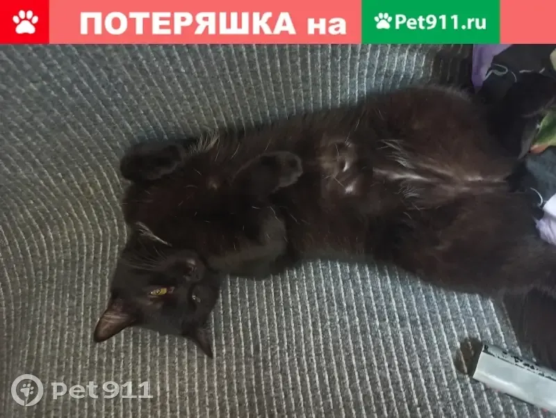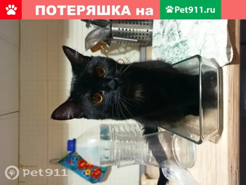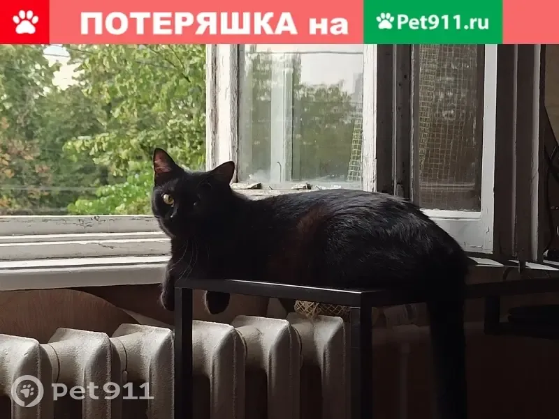 Пропала кошка. Ушла через окно второго этажа, по крышам магазинов. Цвет чёрный с белым пятном на груди; глаза карие; стерилизованная; ласковая, разговорчивая; кличка Люция.