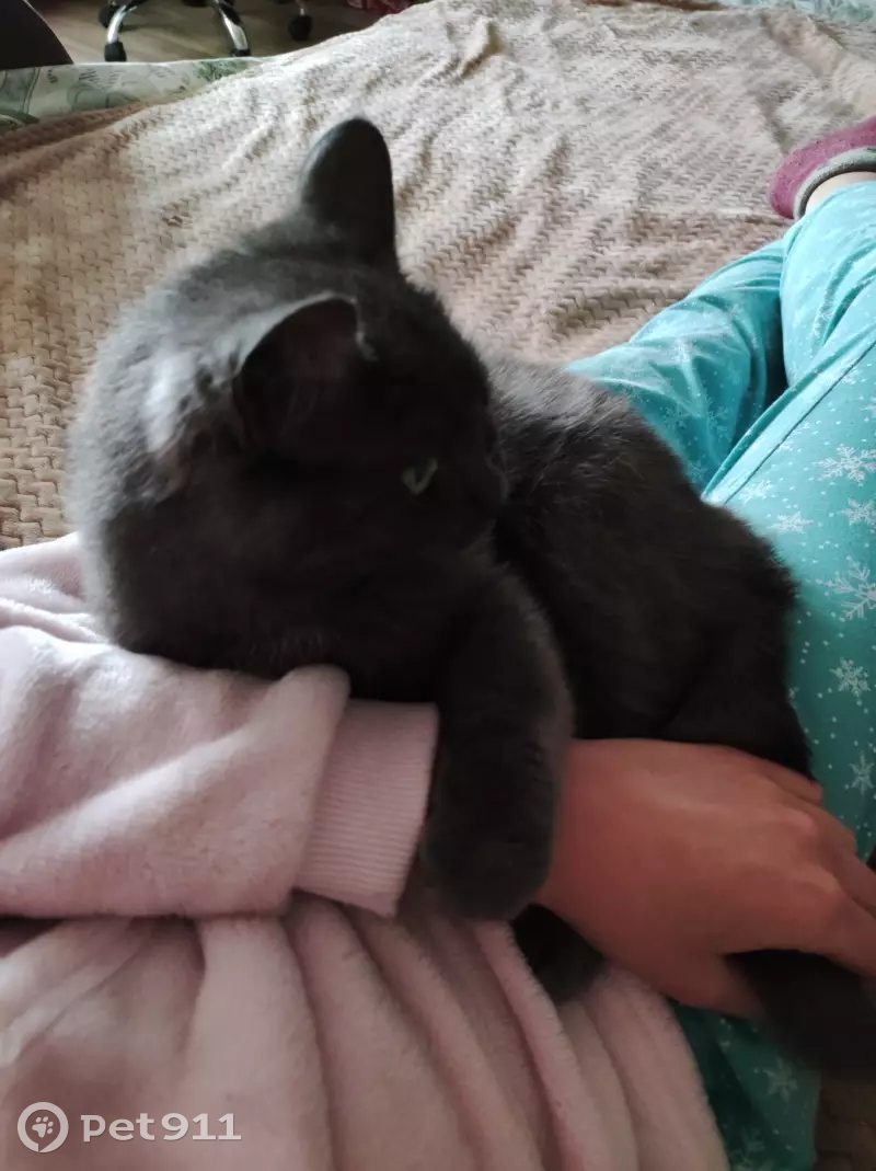 Серенькая, дымчатая, очень ласковая. Небольшая, хвост короткий, усы длинные. Особых примет нет. Мужчин побаивается, к женщинам ласковая. Около подъезда была на руках, испугалась салюта и быстро убежала. Дома от гостей пряталась под диваном, скорее всего прячется где-то.
