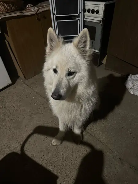 Белый мальчик, порода Лайка, откликается на Митчел, не агрессивный, дружелюбный! Пожалуйста если найдете не отпускайте , придержите сразу подъедем заберем, вознаграждение !