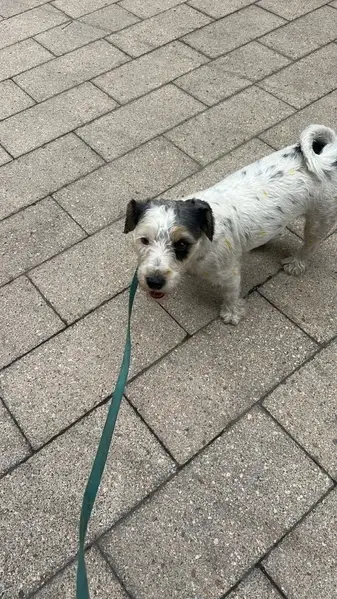 Маленького роста, окрас белый с чёрными пятнами, кудрявый, помесь чужим не даётся, может быть приступ эпилепсии. К сожалению был без ошейника. Испугался звука петарды и убежал, пока найти не можем, возможно сидит где-то в подъезде близлежащих домов, все подъезды обойти не смогли, т. К. Двери закрыты.