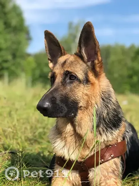 Немецкая овчарка, окрас Чепрачный, кожаный ошейник с серебристыми клепками, у собаки течка, была потеряна вместе с кабелем той же породы и окраса бегают вдвоём