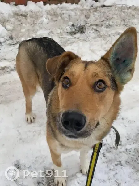 Собака была в ошейнике с желтой биркой