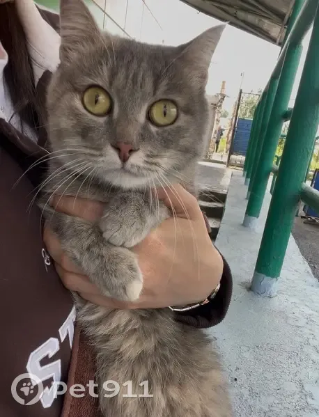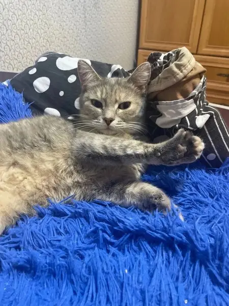 Кошечка серая, примерно 5 лет. Когда открывает рот, а потом закрывает, губа с одной стороны цепляется за зуб, и у нее получается очень возмущенный вид. Кошечка лаковая, мурчит, практически никогда не мяукает. Видимо её несколько дней до того как нашли её травмированной, она ходила, была здорова. Кто-то её ударил, у нее ушиб позвоночника, и внутренних органов. Осмотр, клинику, лекарства, передержку в больнице оплатили, оставить себе не можем. По восстановлению кошеки, ищем новых либо старых хозяев.