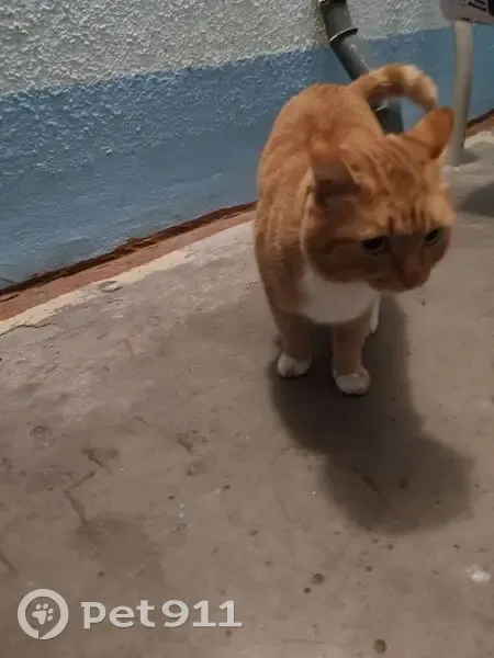 Кот некастрированный. Ласковый. Зеленый ошейник. Похож на породистого или помесь с породистым. Он сидел в подъездах, но сейчас на улице, то ли вышел, то ли выгнали.
