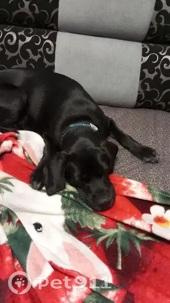 Черный ретривер , лабрадор, по возрасту год может чуть больше, два ошейника голубого цвета от блох, и обычный для поводка, чистая ухоженная, знает все команды, очень любит детей.