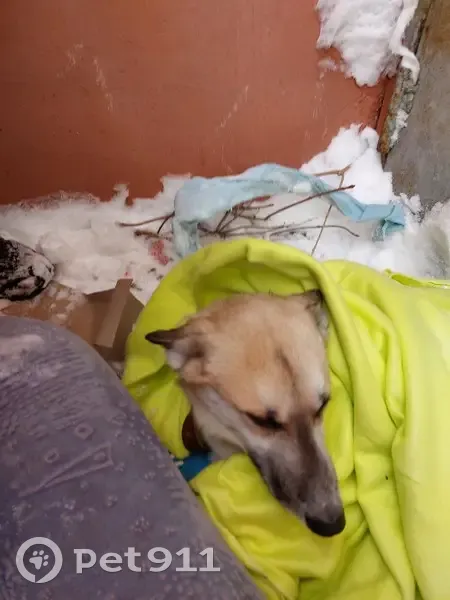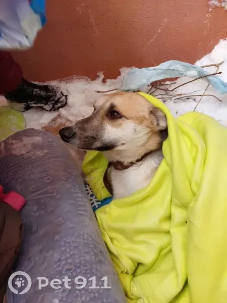 Южный район города Кемерово. Найдена дворняга с коричневым кожаным ошейником, девочка светло-коричневого и белого окраса, длинные уши, вытянутая морда. Возможно повреждена лапа, не ходит. Прячется рядом с "Соляной пещерой "Бриз".