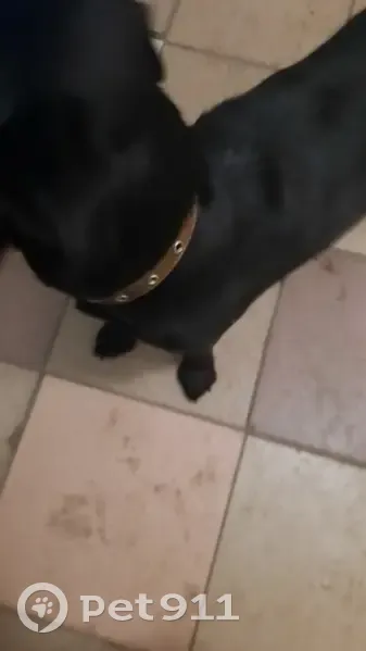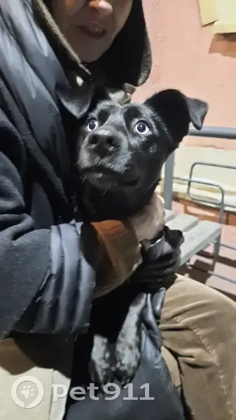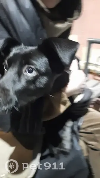 Найдена собачка, черная, глаза голубые, ошейник коричневый. Не большая.