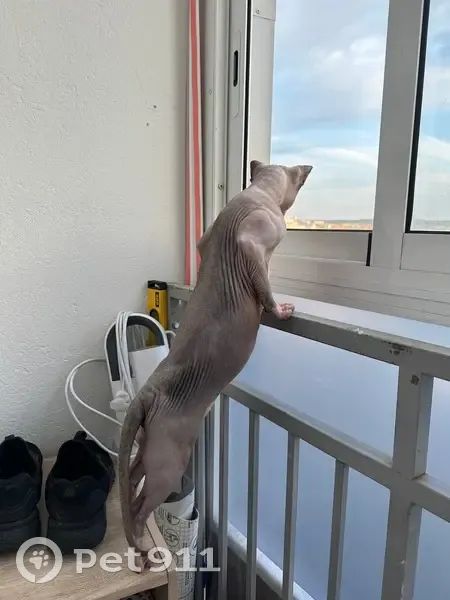 Сфинкс,серый Квартирный,шугливый Крупный кот,вес около 7 кг. Вышел из дома и не вернулся
