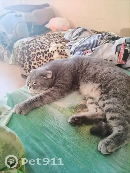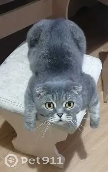 По подозрениям ночью выбежал в подъезд, и больше мы его не видели. Порода: Вислоухий шотландец Окрас: серо-белый, полосатенький, глазки бледно-жёлтые По размеру крупный