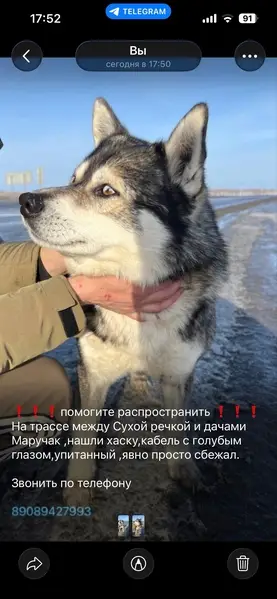 Доброго времени суток. В районе кардиоцентра потерялась собака породы лайка. Прочем откликнуться кто может видел